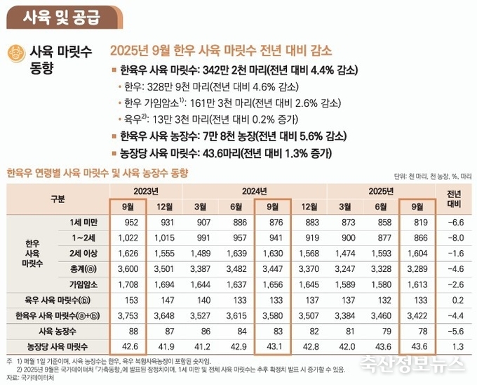 한돈미래연구소, 2025년 10월 한돈팜스 전산성적 보고서