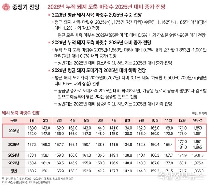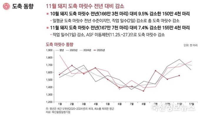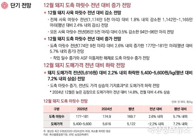 한국농촌경제연구원 농업관측센터, 축산관측동향(돼지) 2025년 12월호 발표