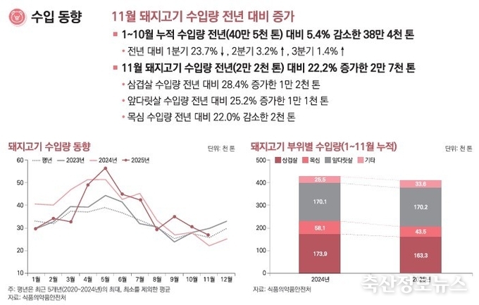 한국농촌경제연구원 농업관측센터에서 발표한 축산관측동향(돼지) 2025년 12월호 내용을 게재합니다.