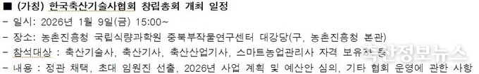 한편 축산기술사인 설립 추진위원회는 현재 10여 명의 축산전문인(축산기술사 등)으로 구성되어 협회 설립 준비와 창립총회 준비를 병행하고 있으며 현장의 뜻 있는 축산전문 기술인들의 많은 관심과 참여를 기대하고 있다.