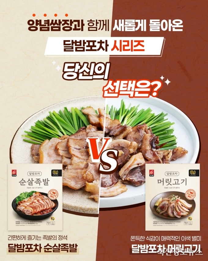 새롭게 단장한 달밤포차 2종은 엄선한 원료육을 도드람만의 비법 육수로 삶아내, 늦은 밤에도 부담 없이 즐길 수 있는 담백하고 깊은 맛이 특징이다. 특히 소비자 의견을 반영해 기존 냉채겨자소스 대신 양념쌈장을 동봉해, 족발과 머릿고기 특유의 고소한 풍미를 한층 더 끌어올렸다.
