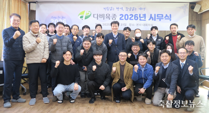 (주)다비육종(대표이사 윤성규)은 지난 12월 31일 다비육종 본사에서 임직원들과 함께 ‘2026년 시무식’을 진행하였다. 행사는 지역적으로 참석이 어려운 직원들을 위하여 대면 및 화상으로 동시에 진행되었다.