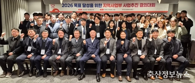 도드람양돈농협(조합장 박광욱)의 자회사 ㈜도드람양돈서비스가 지난 1월 8일부터 9일까지 충남 태안 아일랜드 리솜에서 ‘2026년도 사업추진결의대회’를 개최하고, 지난해 성과 분석과 더불어 새해 사업 목표 달성을 위한 내부 결속을 다졌다고 밝혔다.