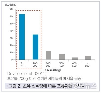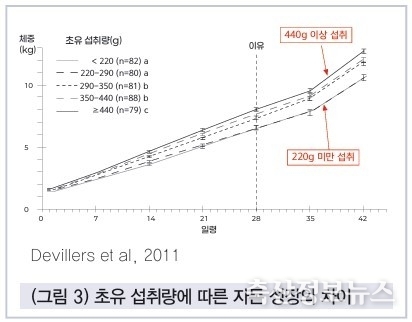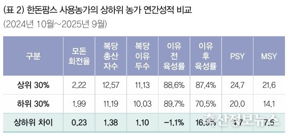 이유 전 육성률 차이는 1%가량으로 큰 편은 아니지만, 이유 후 육성률의 차이가 17% 가까이 벌어진다. 간단히 이야기하면 생산성이 높은 농장은 이유 후 폐사와 손실이 적다는 것이다. 물론 생산성이 높은 농장 역시 13% 이상 이유 후 폐사율을 기록하고 있어 대부분 농장이 이유한 돼지를 살려서 내보내는 것이 큰 숙제임을 알 수 있다.