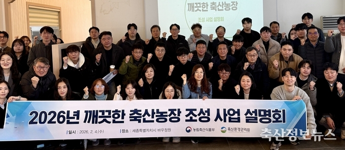 축산환경관리원(원장 문홍길)과 농림축산식품부는 지난 2월 4일 세종시에서 지방정부 담당자를 대상으로 ‘2026년 깨끗한 축산농장 조성계획 설명회’를 개최했다고 밝혔다.