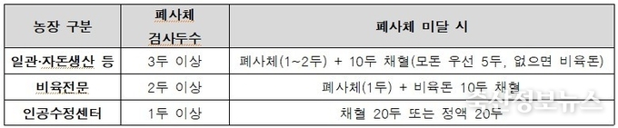 ※ 폐사체가 전혀 없는 경우 모돈 우선 20두 채혈