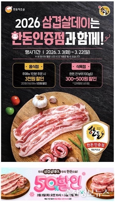 더불어 공식 온라인몰인 ‘한돈몰’에서도 3월 17일까지 기획전을 통해 최대 50%의 할인 혜택을 제공하며, 전국 주요 대형마트와 농협 유통채널에서는 3월 한 달 동안 한돈 삼겹살과 목살을 최대 50% 이상 할인된 가격으로 구매할 수 있다.