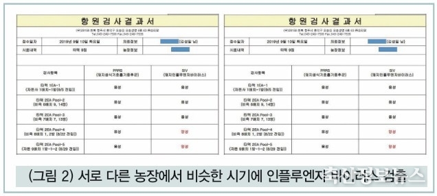 (1) 2019년 9월 비슷한 시기에 서로 다른 농장에서 인플루엔자 바이러스를 검출한 사