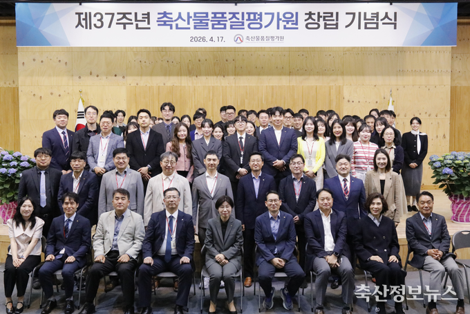 축산물품질평가원(원장 박수진)은 지난 4월 17일 세종시 본원에서 창립 37주년 기념식을 개최하고, ‘탄소중립’과 ‘안전 경영’ 실천 의지의 대내외 선포 및 국민에게 신뢰받는 축산유통 전문기관으로 도약을 다짐했다.
