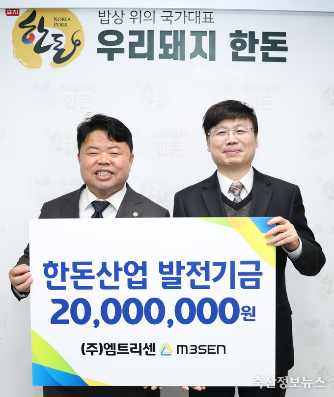 (주)엠트리센(대표 서만형)은 4월 21일 대한한돈협회(회장 이기홍)를 방문해 한돈산업 발전을 위한 기금 2천만원을 기탁했다.