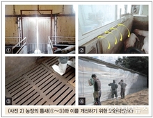 최근 경기 남부와 충청 일대에 PRRS NADC34 유사주가 유행 중이다. 우리는 생산성적 향상을 위해 시설을 보강 및 공사를 하는 등 새로운 시도를 하고 있지만, 공사 과정에 차단방역이 이루어지지 않아 질병이 유입되면 득보다 실이 더 큰 뼈아픈 경험을 하게 된다. 이러한 점을 늘 유의하여 차단방역을 가장 신경 쓰며 시설 보수나 공사에 임해야 한다. 1. 돈사 온도를 낮추자. 여름에 돈사 온도를 낮추자고 하는 것은 당연한 이야기이다. 너무나 당연한 이야기이지만, 막상 하려면 방법을 모르기에 십상이다. 농장에서 적용할 수 있는 돈사 온도를 낮추기 위한 설비보강 방법을 알아보자. (1) 천장 아랫면의 단열재 설치 단열재는 열을 뺏기는 것의 방지에만 국한하지 않고 열이 넘어오는 것의 방지도 한다. (2) 차열페인트 시공(1) 호주 로스턴 지역 양돈장에서 Super Therm이라는 차열페인트 제품을 지붕과 벽에 도포하였다. 그 결과 지붕 온도는 60°C → 29°C로 낮아지고 내부 온도를 낮게 유지하는 데 성공하였다. 차열페인트 제품은 국내에 이미 많은 곳에서 시공 중이기에 쉽게 찾아볼 수 있다. (3) 돈사 지붕 위 차광막 설치 검은색의 차광막은 빛을 흡수하여 열